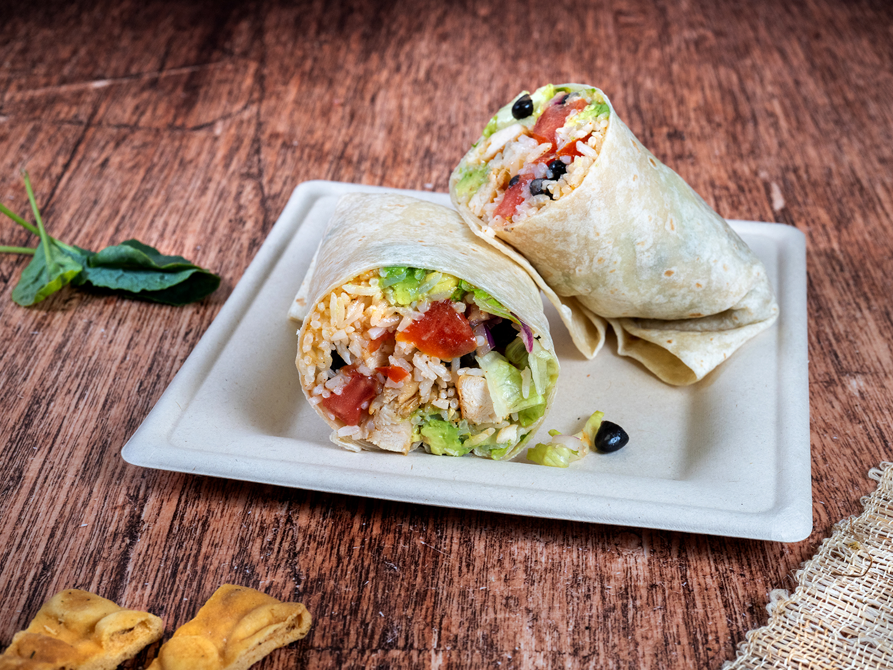 Make it a Bowl, a Salad, or Wrap it Romaine lettuce, jasmine rice, black beans, tomatoes, red onions, avocado, chicken*, tortilla chips, chilli lime dressing.